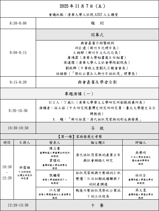 主辦單位:國立清華大學華文文學研究所、祭祀公業法人新竹市林恒茂