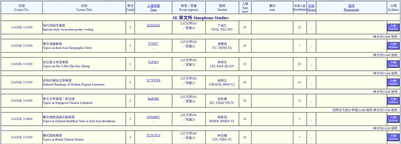 1142學期課表