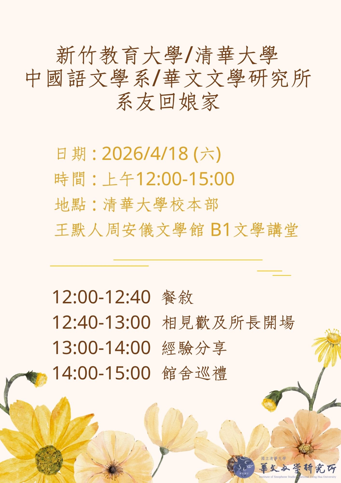 【回娘家活動】敬邀您一同共襄盛舉,4/18(六)歡慶清大校慶暨退休老師、系所友回娘家活動